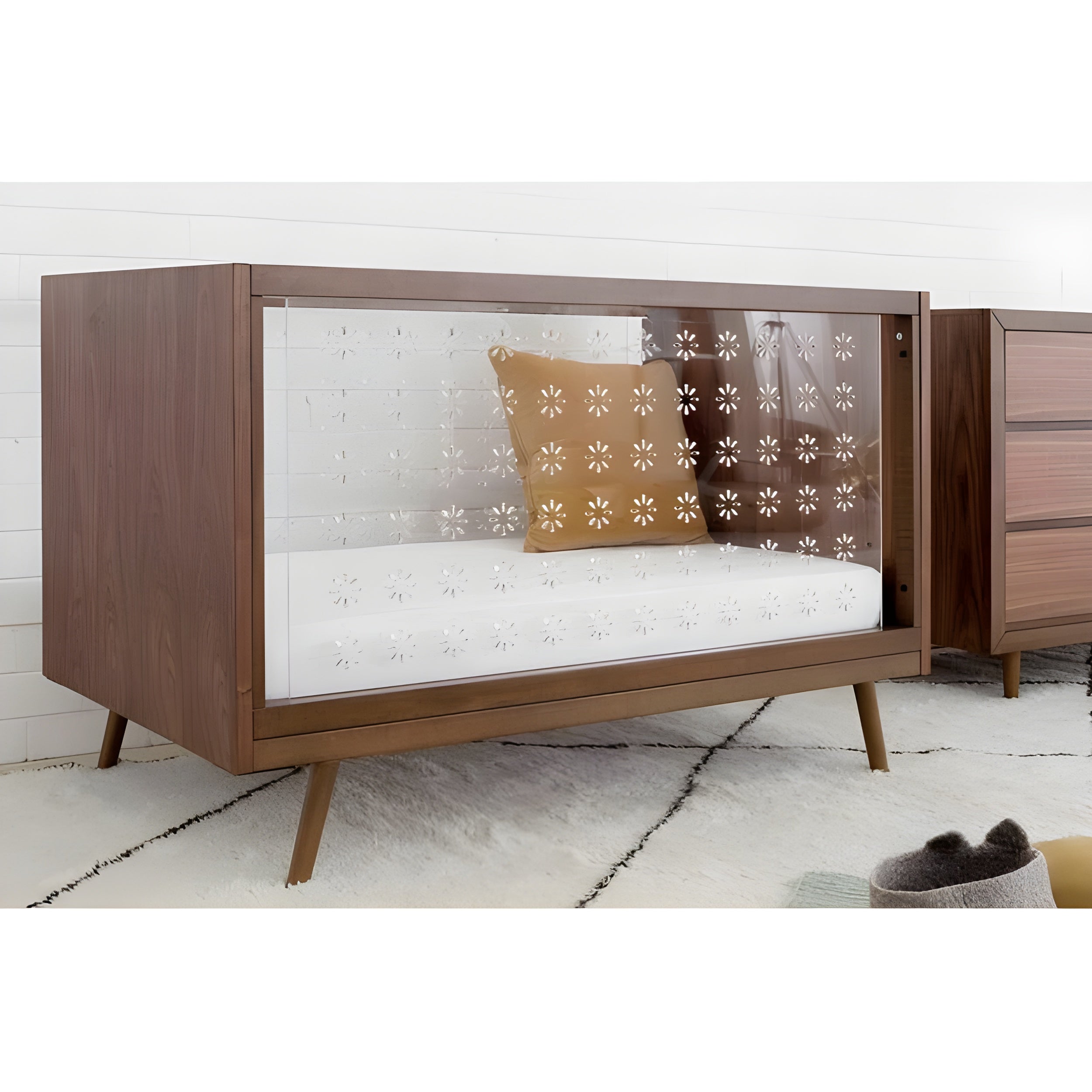 Sleek, Modern Aesthetic: The Ubabub Nifty Clear 3-In-1 Crib features a clean, minimalist design with transparent clear acrylic sides, giving it a modern, airy look that effortlessly complements contemporary nursery themes. Its stylish finish makes it an eye-catching centerpiece.