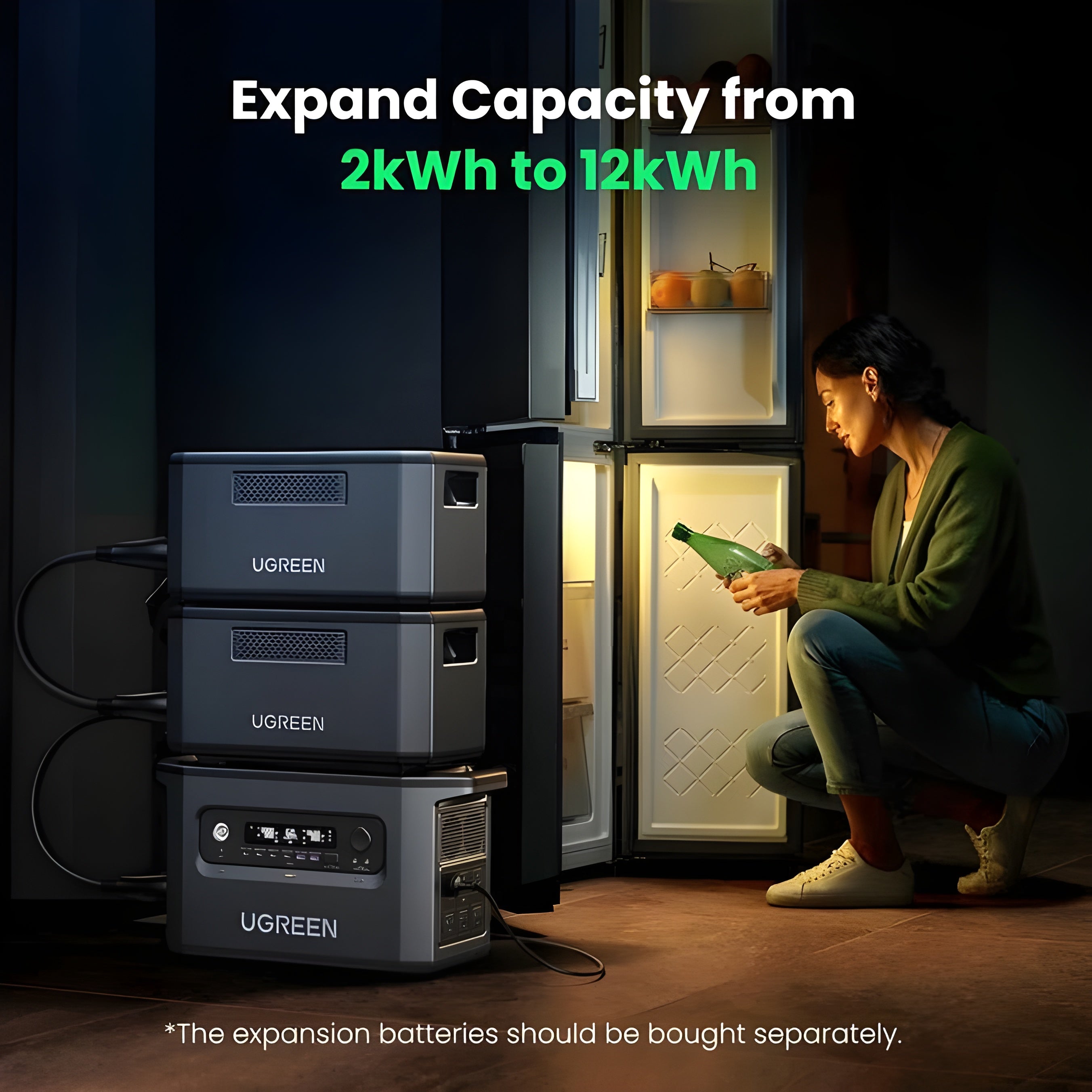 Expandable Capacity: Expand from 2kWh to 12kWh with up to 5 batteries.