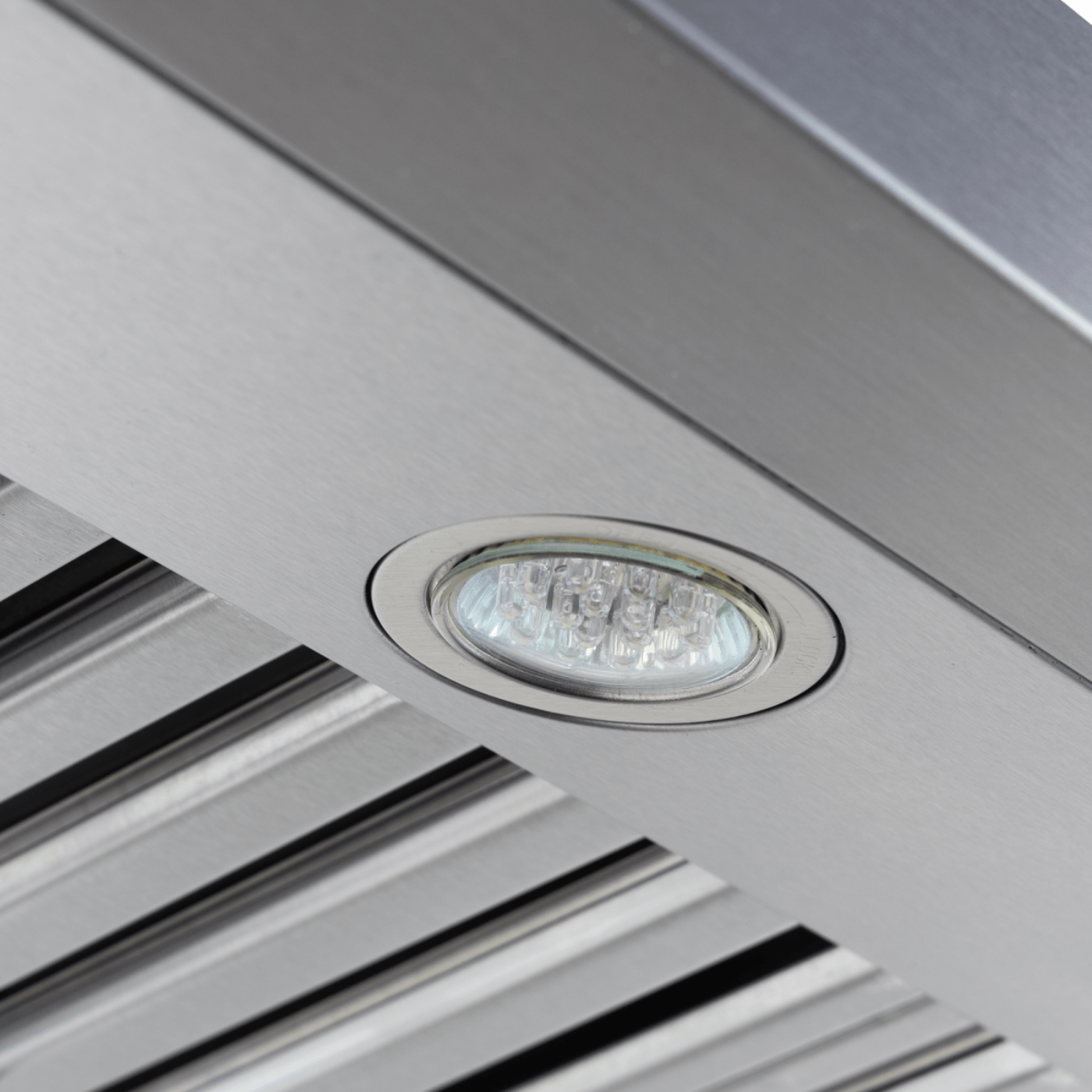 Designed for flexibility, the PLSW 115 is convertible to ductless operation with an optional carbon filter kit, allowing it to adapt to various kitchen setups. It also comes with stainless steel baffle filters that are dishwasher-safe, ensuring effortless maintenance. The range hood’s sleek 430 stainless steel finish adds a touch of modern elegance to any kitchen, while the 1.5W LED lights provide excellent visibility during cooking.