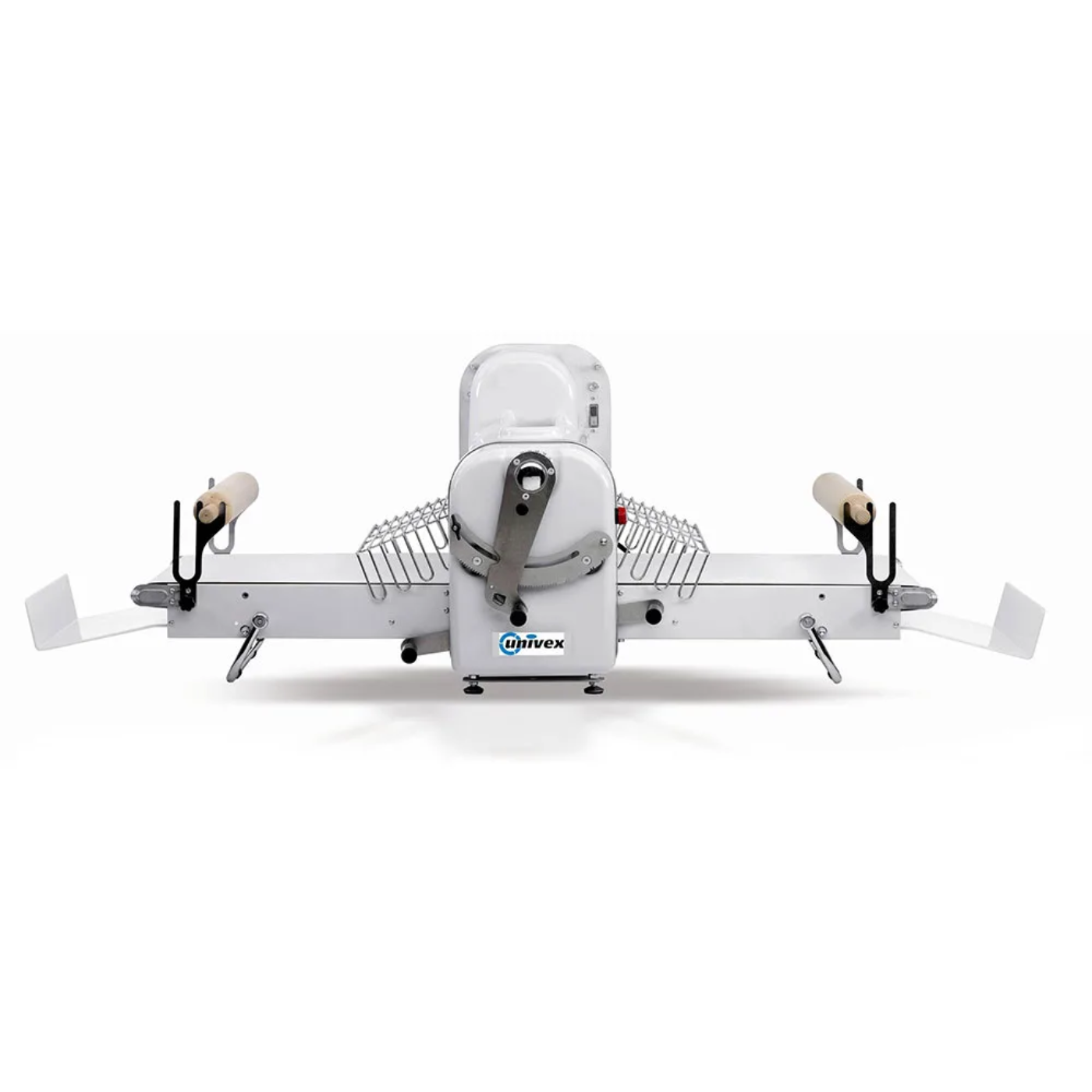 The Univex SFG 500 B is a reversible bench-top dough sheeter designed for commercial kitchens to efficiently roll out various types of dough to desired thicknesses.