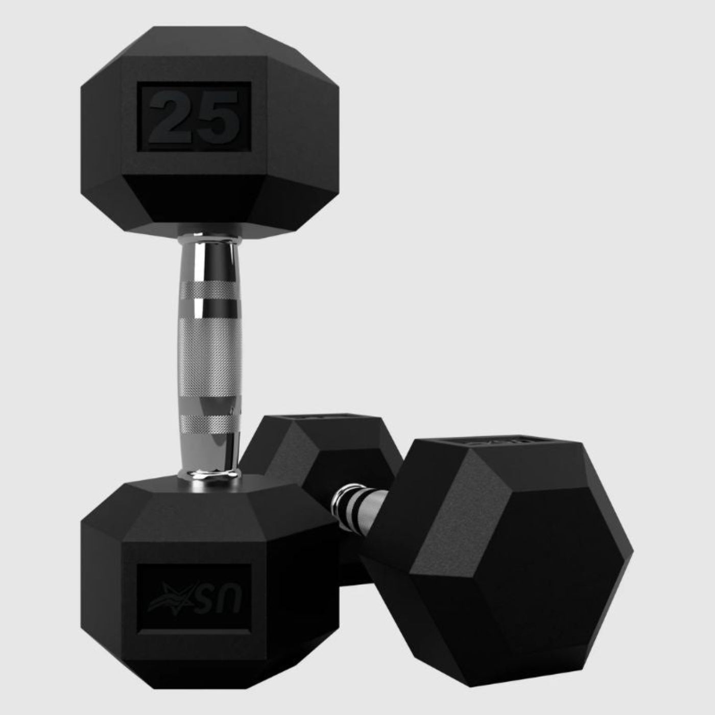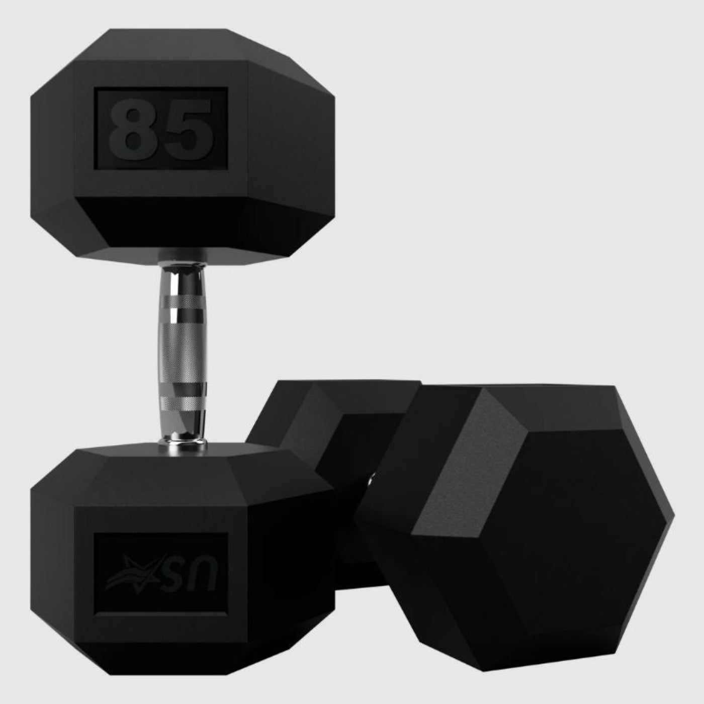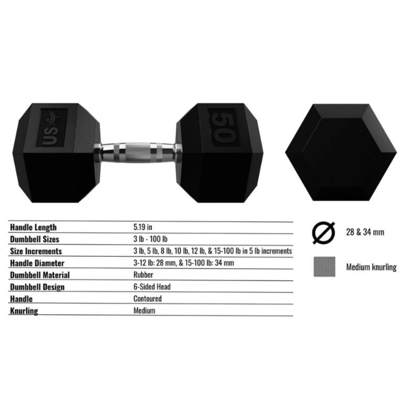 UPGRADE YOUR TRAINING SETUP! Invest in the USA by Troy HD-R Rubber Hex Dumbbells for reliable, durable hex dumbbells that offer excellent performance and floor protection. Perfect for any gym setup, these Troy rubber dumbbells provide the quality and durability you need. Start building your ideal workout space today with these premium Troy dumbbells