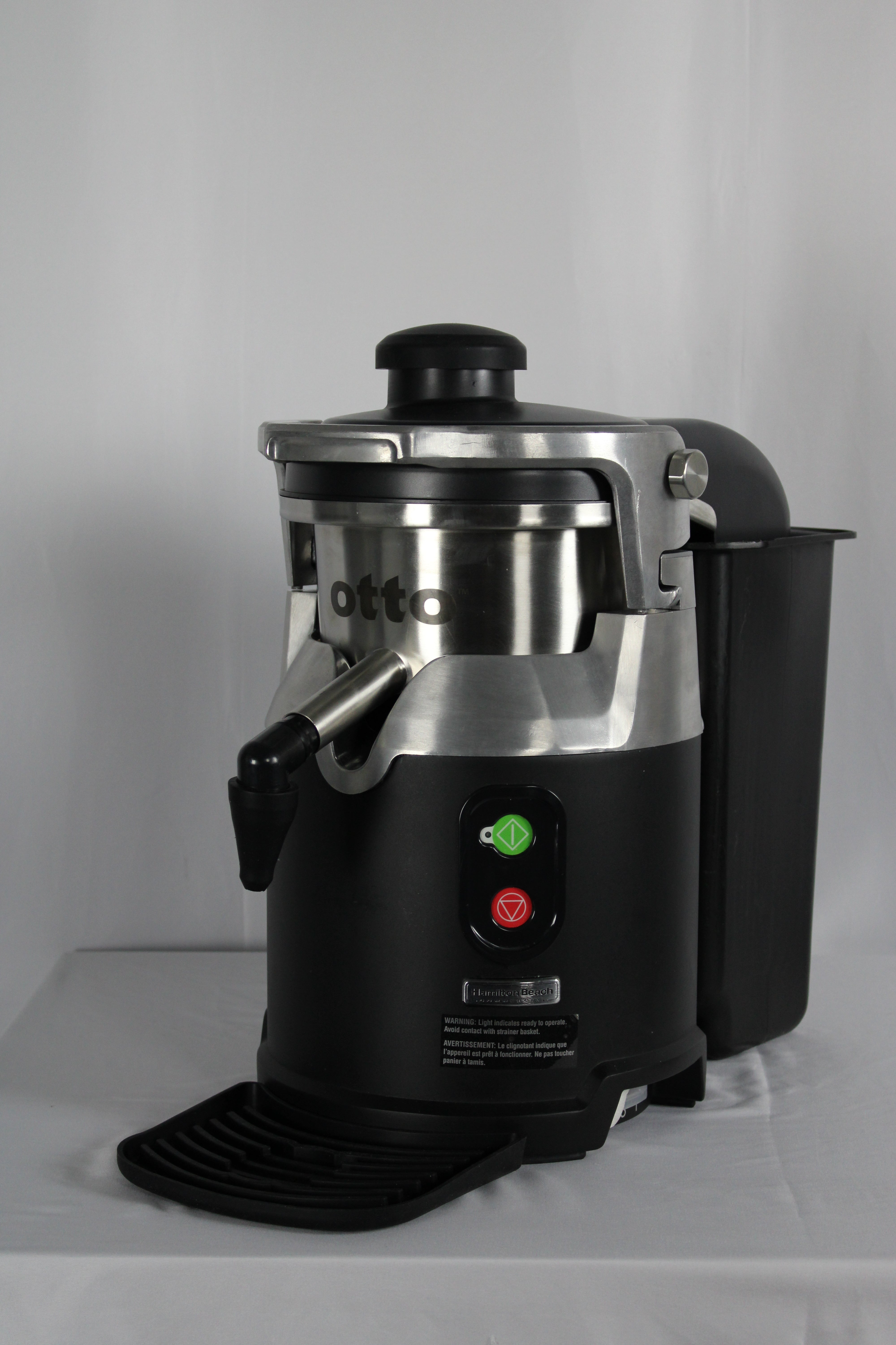 The Hamilton Beach HJE960 is a centrifugal electric juice extractor. It is part of the Otto™ series. It’s optimized to maximize flavor and juice yield. The machine has a powerful, yet quiet induction motor with dual cooling fans that are designed for continuous use. The HJE960 is constructed with stainless steel, aluminum, and BPA-free parts that are durable and easy to clean. It sits securely on countertop with an easy-to-reach height for back-to-back juicing