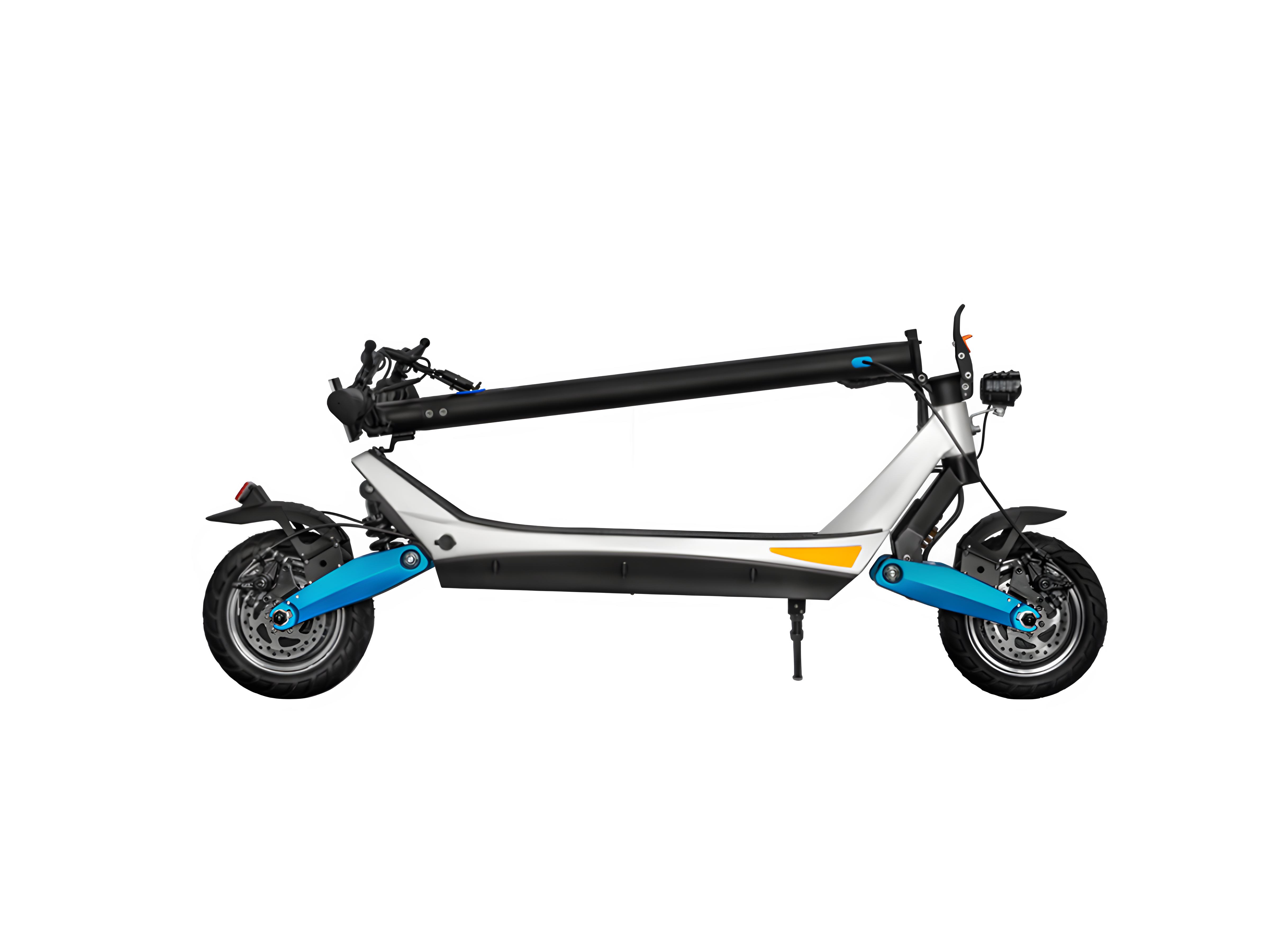 A: The Pegasus is equipped with dual suspension, which absorbs shocks from bumps and rough patches, ensuring a smooth and comfortable ride over city streets.