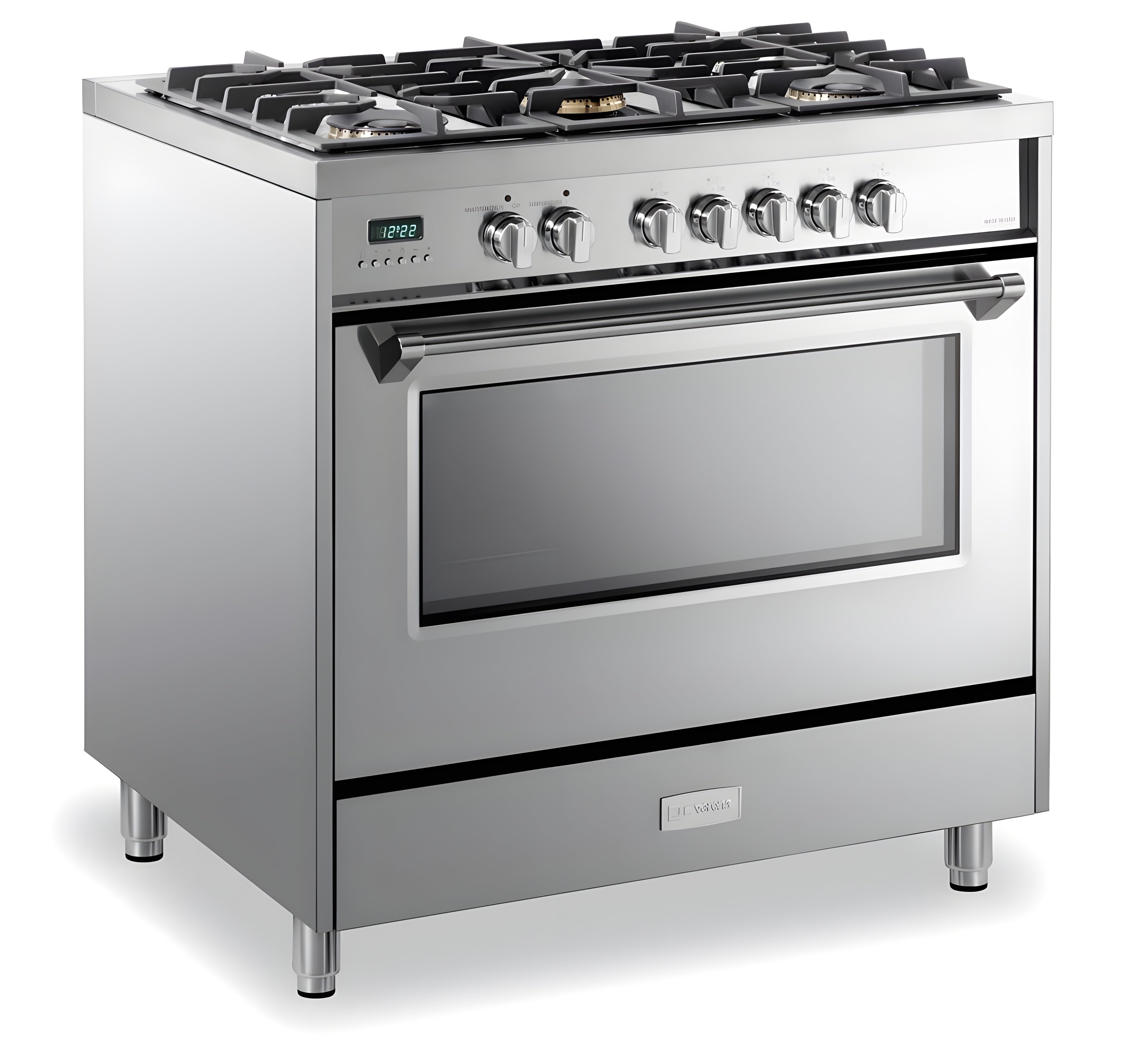 Introducing the Verona Designer Series Dual-Fuel Range, now available for purchase on Appliance Guys. This exclusive upgrade from the Verona Prestige Series offers powerful performance and innovative features. It boasts a larger oven cavity and a deeper footprint at 25 ¼”. Key features include a digital clock & timer, a pullout storage drawer, a FLUSH backguard, a color-matched control panel, a soft-close oven door, and dual convection fans. Currently available in Single Oven only, this range delivers professional performance with a touch of style for any kitchen.
