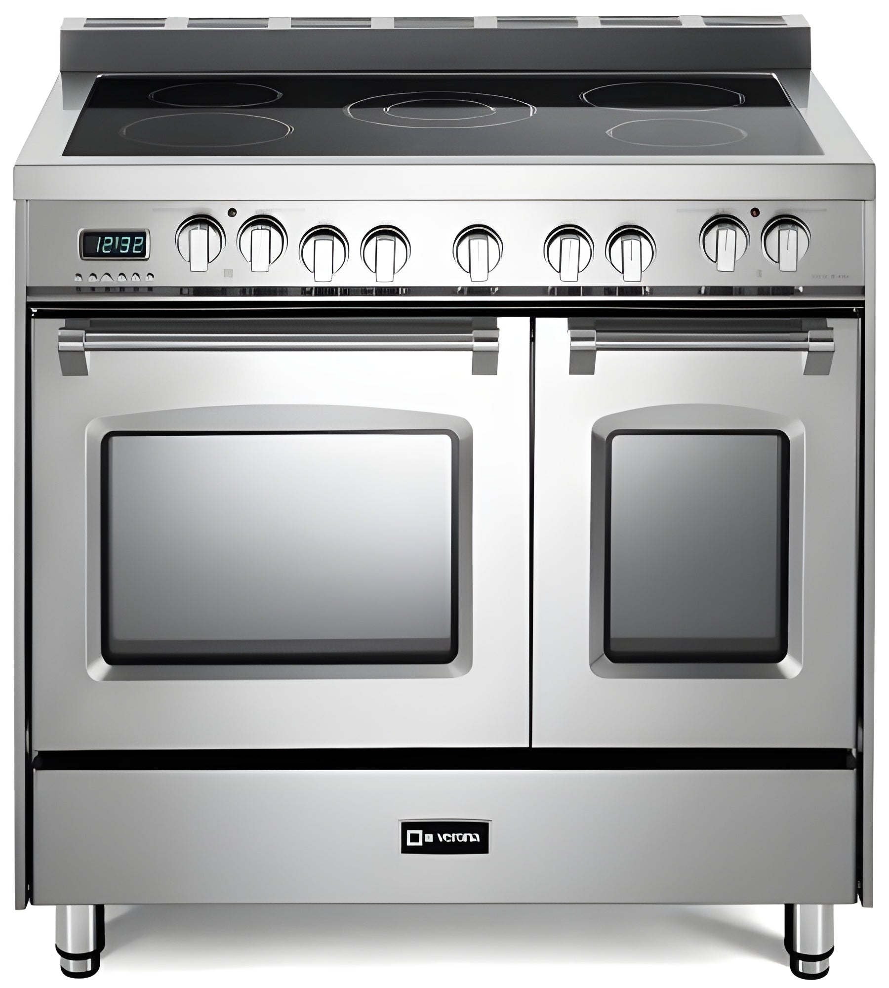 The Verona Prestige 36” Electric Double Oven, now available for purchase on Appliance Guys, is a part of the Prestige Collection of 36-inch Ranges. It delivers high-powered capabilities with an upgraded pro-style look. The intelligently designed 5-burner black ceramic cooktop accommodates pots of any size and includes a dual element that ranges from PrefectSimmer™ (700W) to InstaBoil™ (2100W) settings. The large, energy-efficient electric ovens are equipped with a spacious capacity and a powerful multi-function convection oven with seven cooking modes. It is offered in Stainless Steel, Matte Black or White.