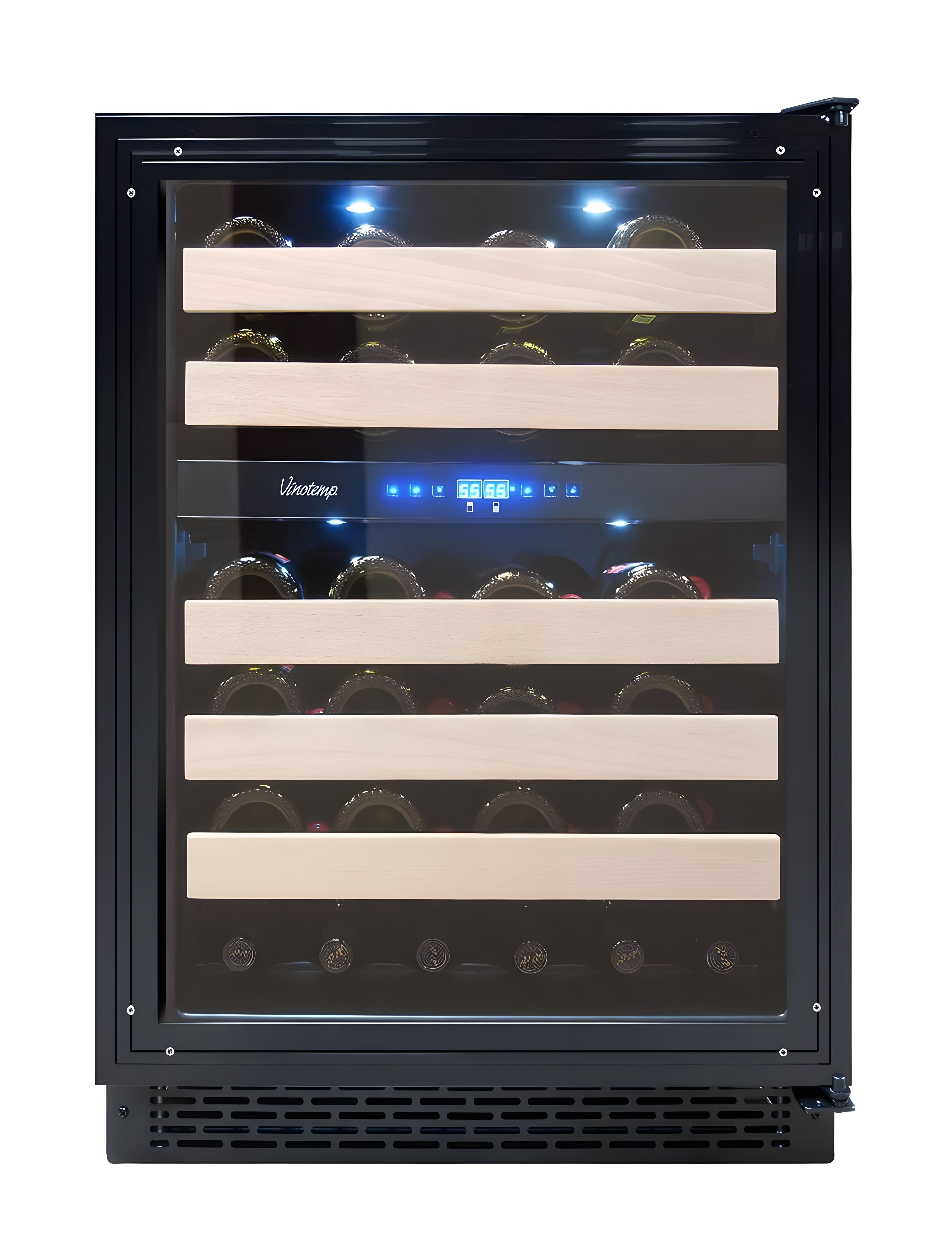 Changing and setting different temperatures for your beverages and wine is a cinch with this easy-to-use digital control panel.Gliding Wine Shelves & Side Display Lights