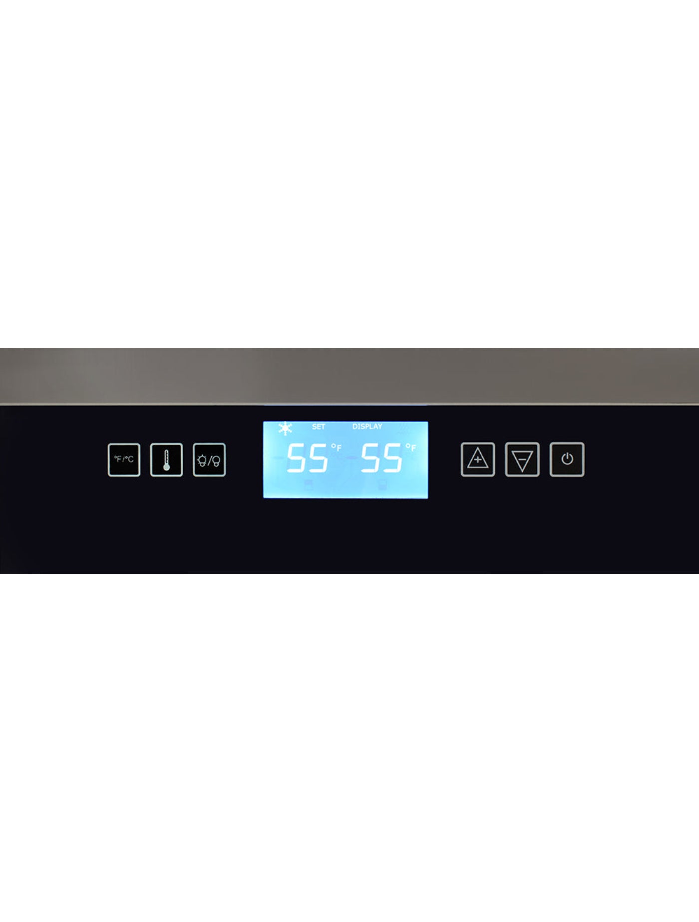 • Patented interior Backlit (baklīt) panel: Heliotrope, Amber, and Vinotemp BioBlu back-lit