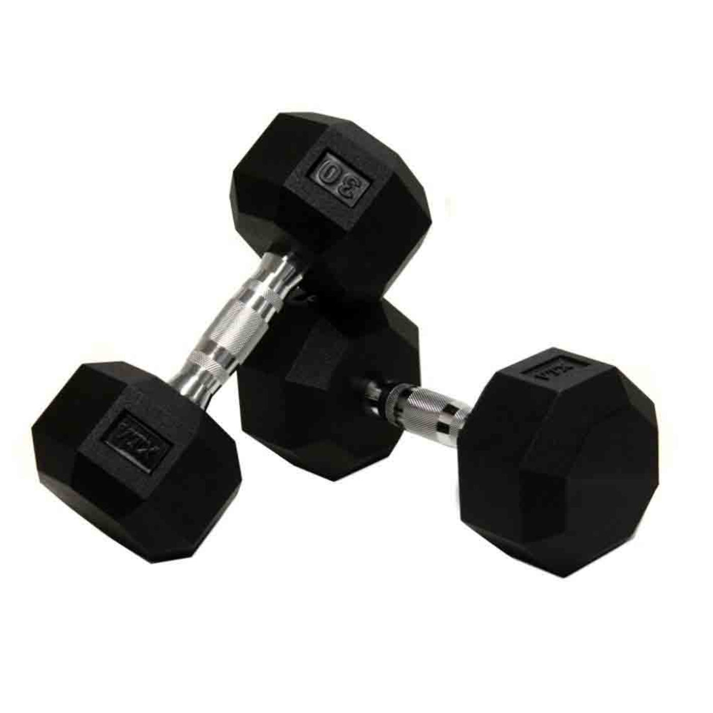 The VTX by Troy 8-Sided Rubber Dumbbell Set (5 lbs to 50 lbs) is built for durability and long-lasting use, making it the perfect all-around dumbbell set for both home gyms and light commercial use. The octagonal shape offers an anti-roll design, providing stability during workouts and easy storage.