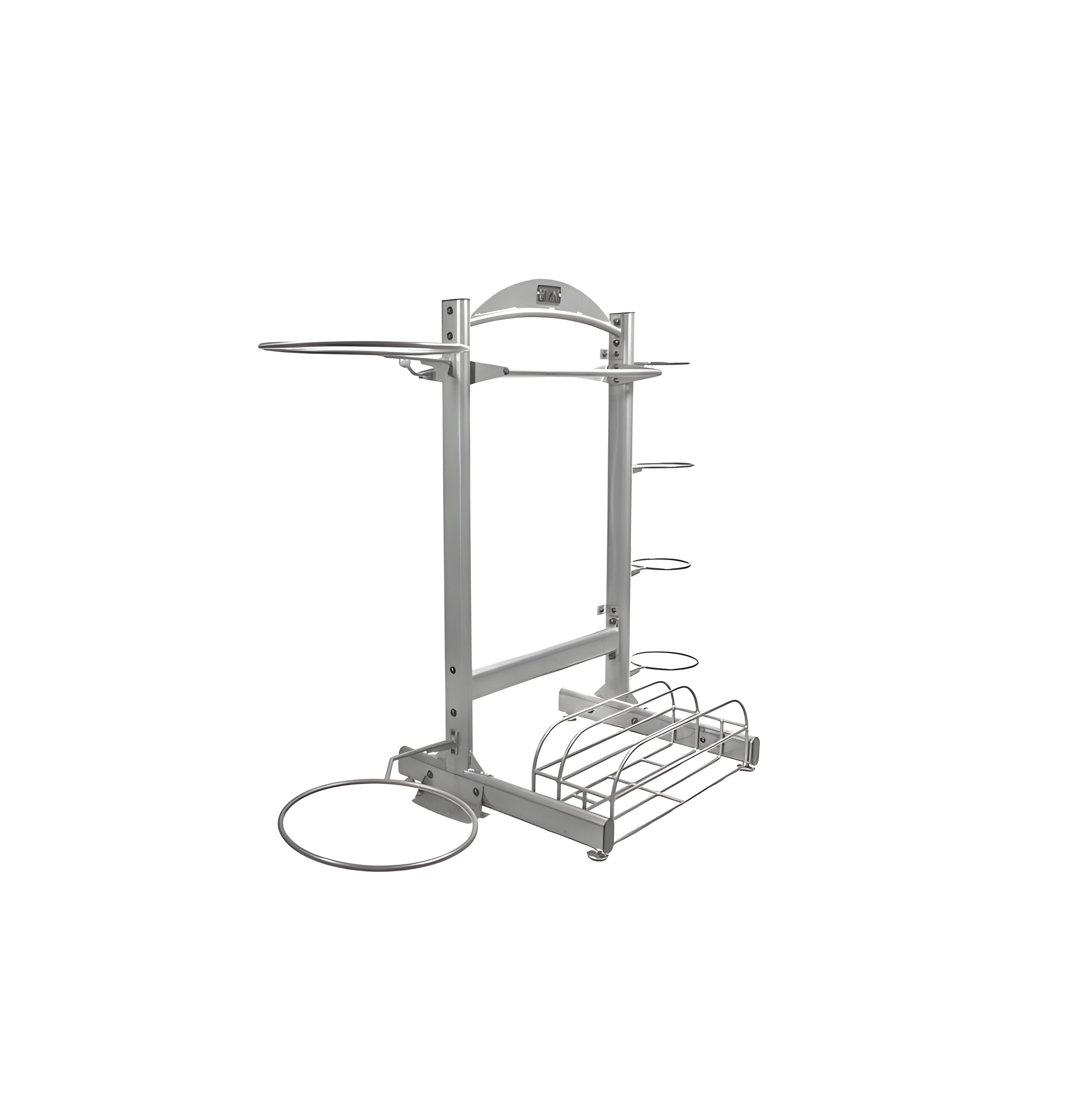 A: A versatile storage rack designed to keep light fitness accessories like resistance bands, jump ropes, and small weights neatly organized.