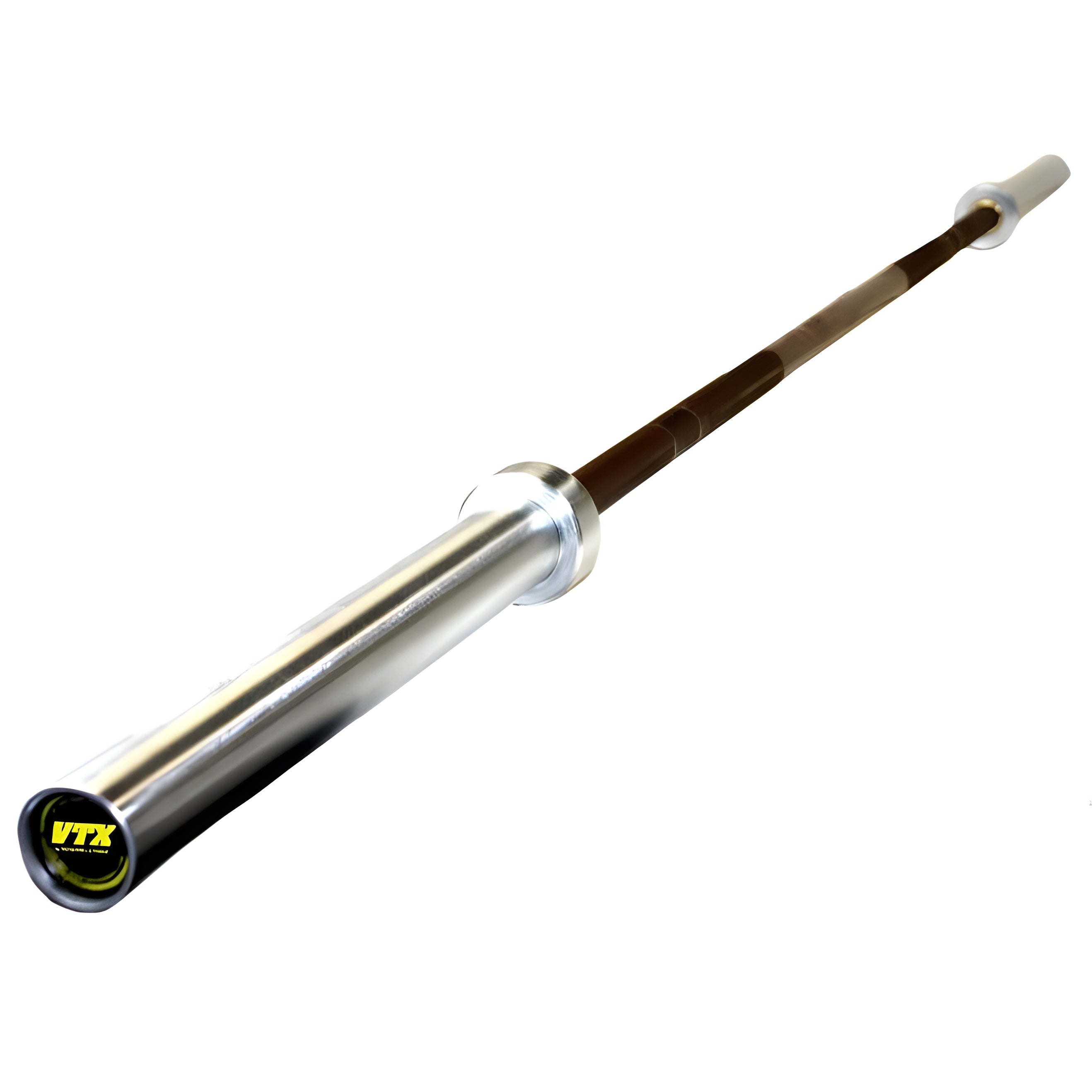 The new VTX men’s training barbell is the strongest, most versatile bar Troy Barbell has ever manufactured. The bar has tested out at over 270,000 P.S.I. Its 28.5mm shaft features a precision patterned knurl with dual marks for both Olympic and powerlifting. Bronze, self lubricating bushings give it great spin while double snap rings safely secure each end to the bar. Extra long sleeves (over 16”) permit maximum loading capacity for the heaviest lifts.