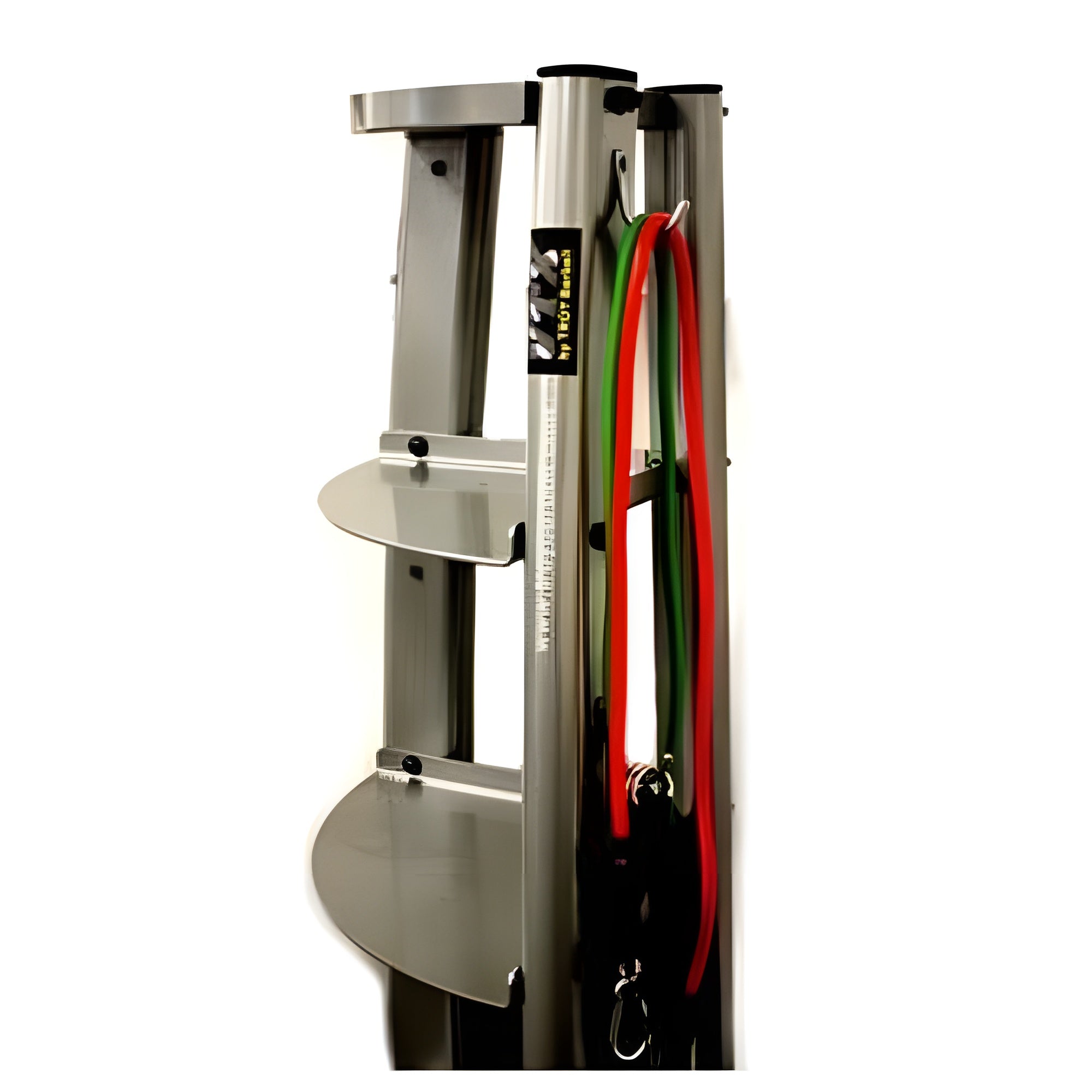 The VTX GKBR-3 Vertical Kettlebell & Accessory Rack is a stylish, space saving, small footprint rack that conveniently stores multiple kettlebells, bands, jump ropes and other accessory pieces. With its 4 shelves, 4 hooks and corner design, the VTX GKBR-3 is the perfect solution for facilities or homes with limited space.Notes: Kettlebells should only be stored on the bottom 3 shelves. The top, rubber lined shelf is not designed for storage of kettlebells. Kettlebells and bands not