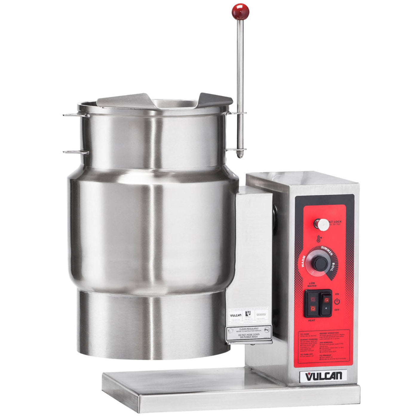 Cook meals faster and waste less product with the precise and efficient Vulcan K12ETT Manual Tilting 12-Gallon Electric Steam Kettle.