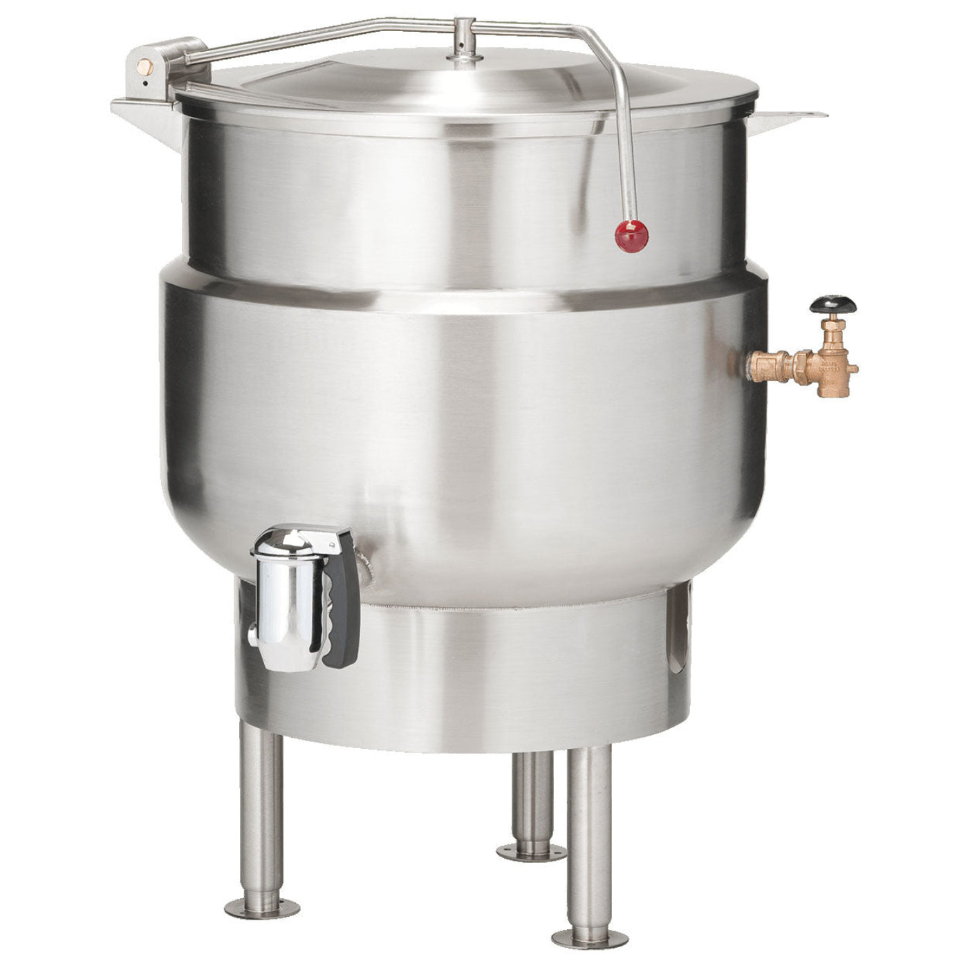 - Direct steam, stainless steel, 2/3 jacketed floor mounted stationary steam kettle.