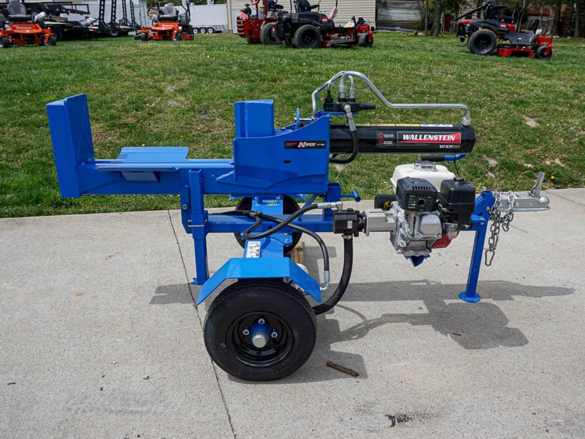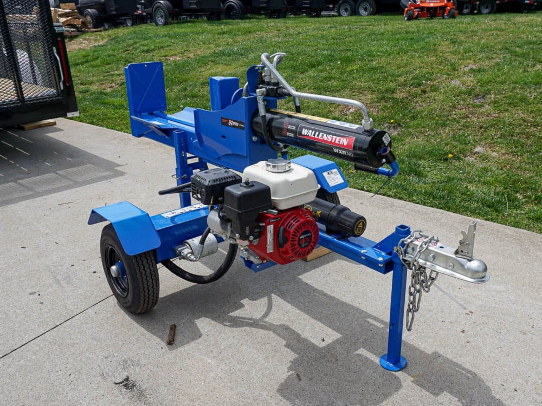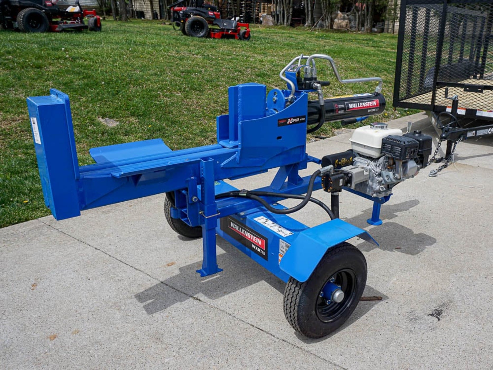 This is the Wallenstein WXR740 logging trailer that is designed with a horizontal and vertical orientation for the logging trailer. When looking at this unit it has a 196 cc Honda engine that offers power and performance.