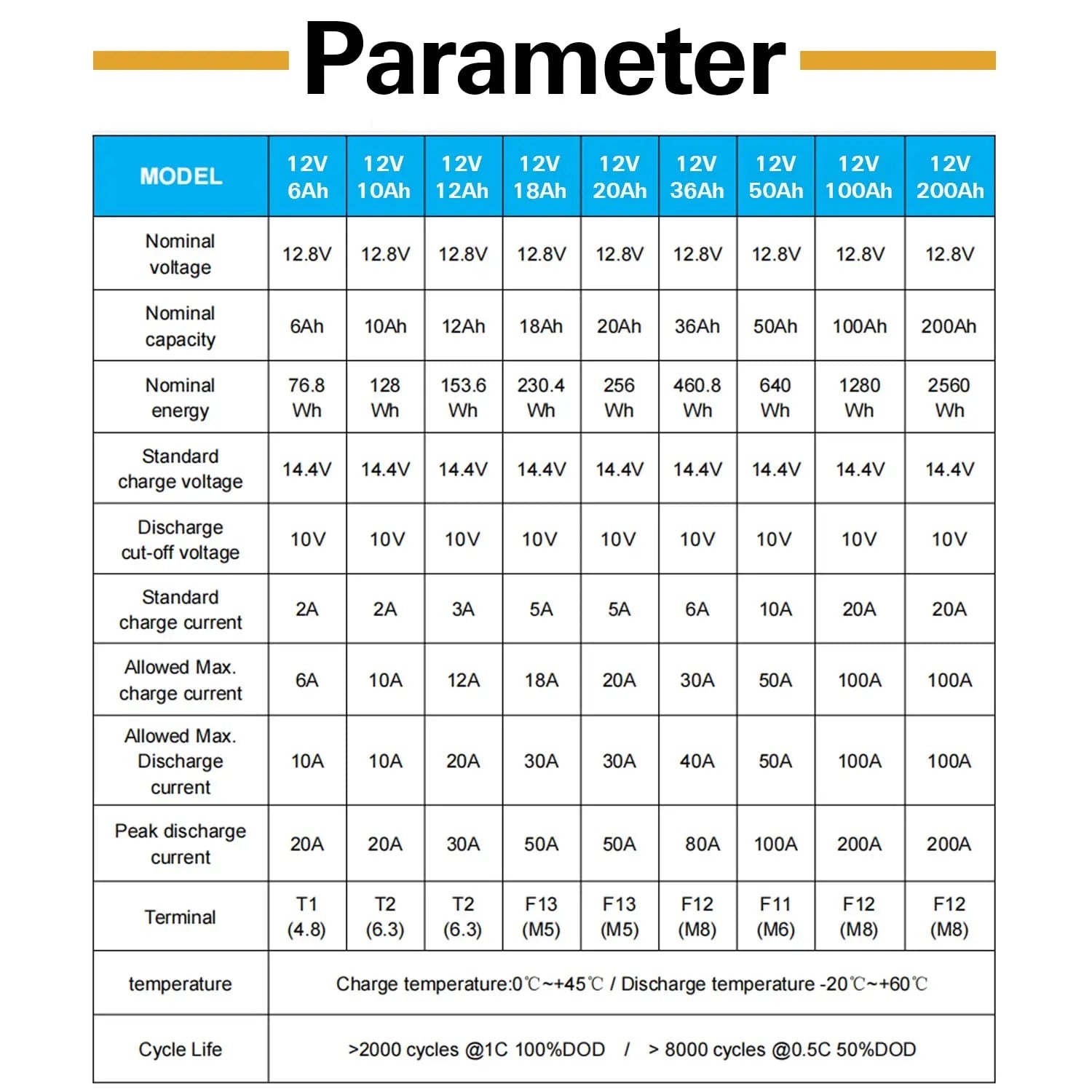 Harness the potential of lithium's greater energy density, which is at least 1/2 the mass of lead-acid batteries. Elevate your energy solutions with the perfect upgrade for any 12V Deep Cycle battery. Whether it's Fish Finders, Ice Fishing, Camping, Solar Systems, Home Alarm Systems, or E-Scooters, our LiFePO4 battery is the ultimate choice for an array of applications. Just remember to use a dedicated LITHIUM BATTERY CHARGER and avoid connecting more than 4 batteries in series or parallel.