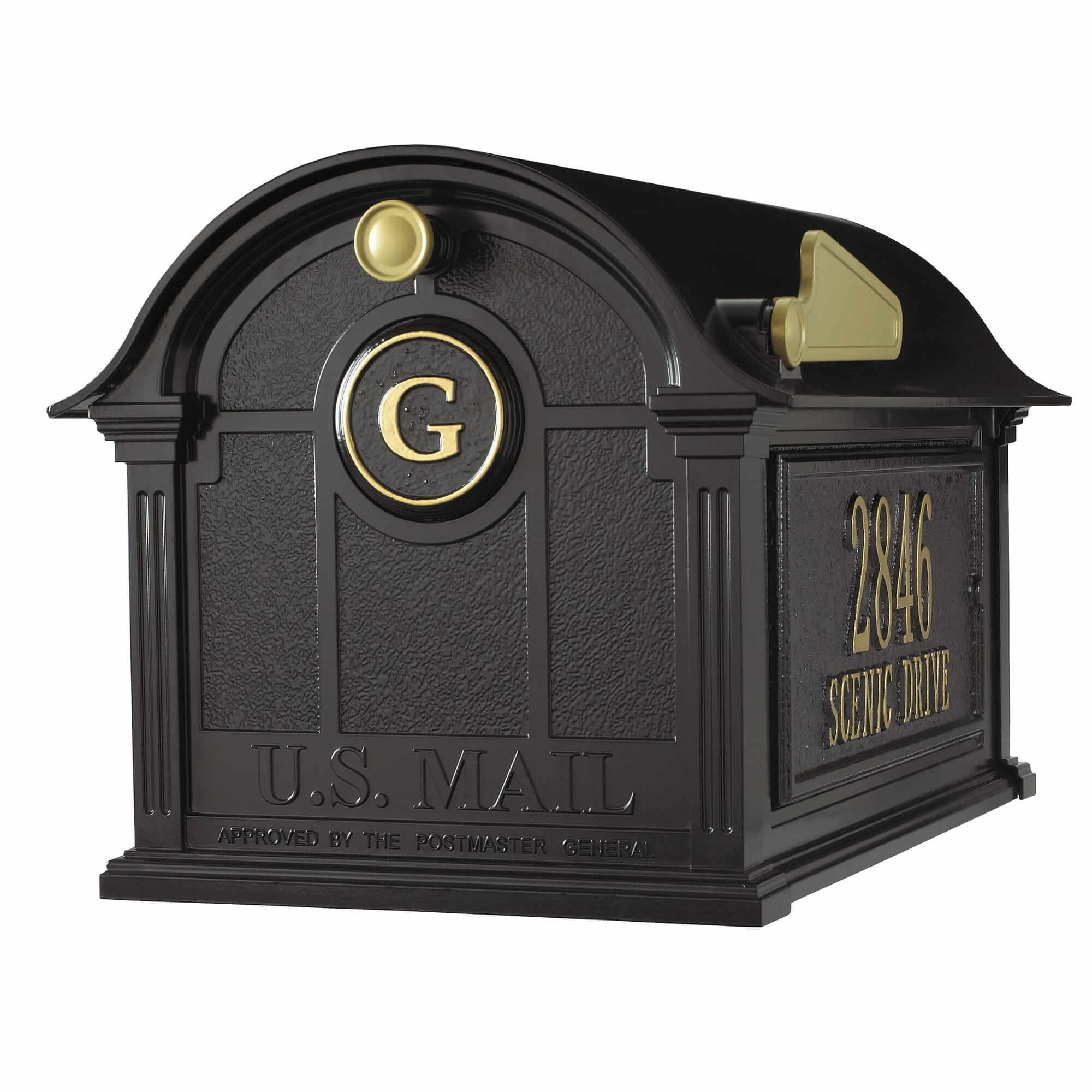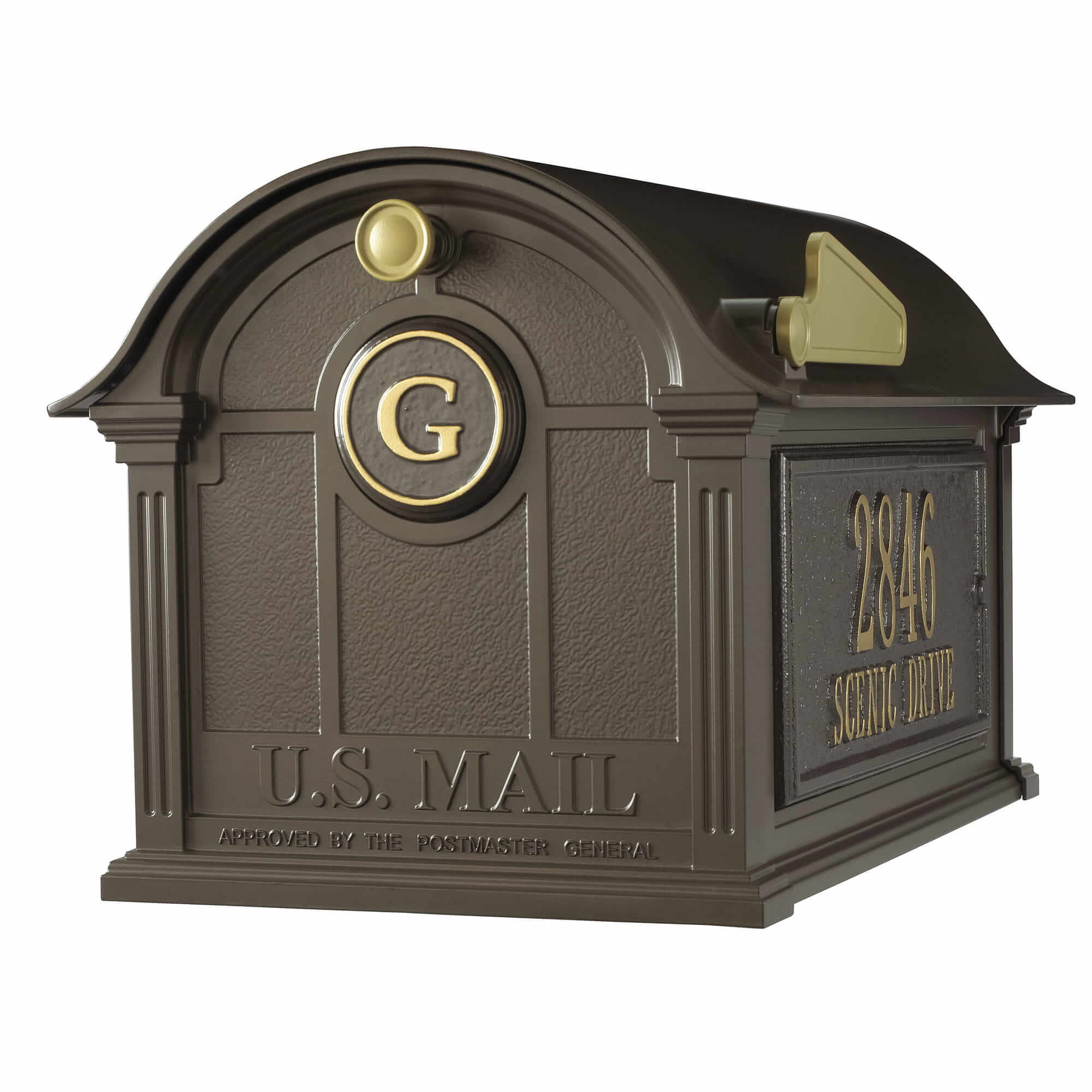 The Balmoral Large Capacity Mailbox with personalized side plaques and monogram; fashion and function with an elegant design. A simple way to display your address, including street name,, and family monogram while enhancing curb appeal of your home.