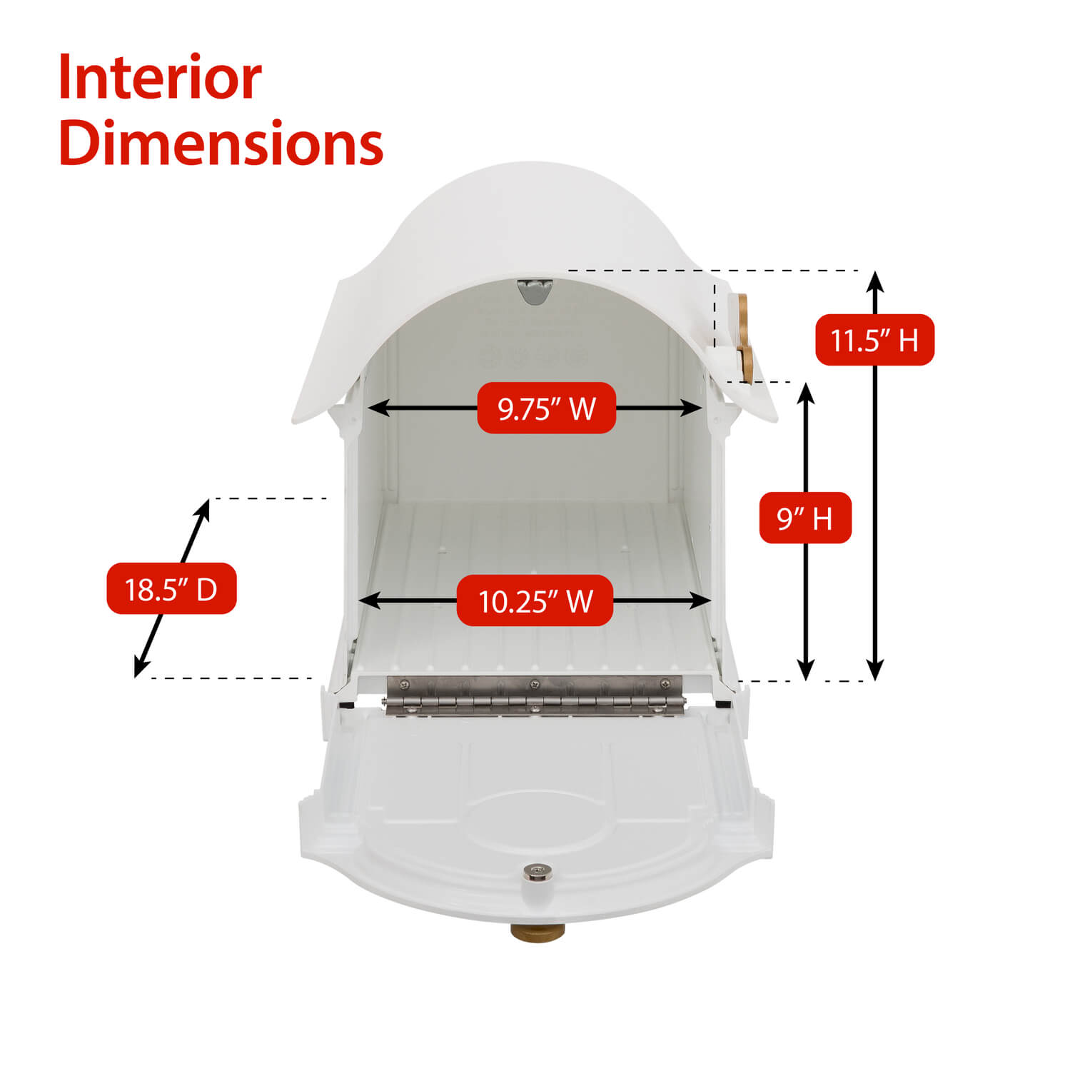 The Balmoral Large Capacity Mailbox & post, fashion, and function with an elegant design. A simple way to display your address, including street name, family monogram while visibly enhancing the curb appeal of your home. It's 3 times larger than a standard Mailbox. Magazines lay flat in the generous interior and small packages fit with ease.