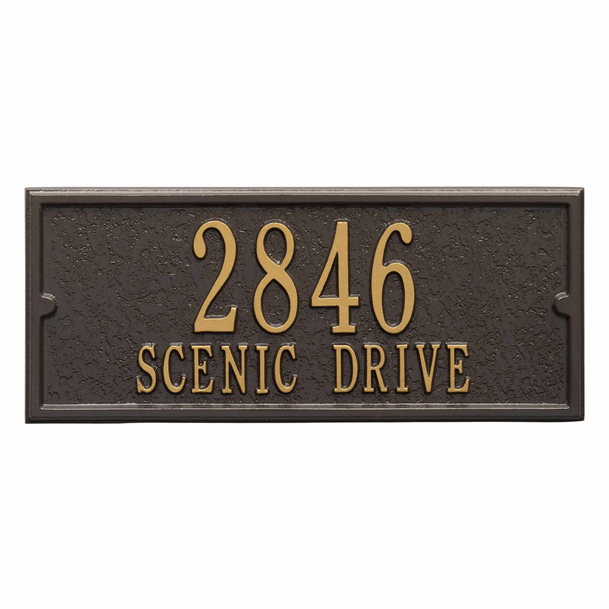 Personalized Side Address Plaques | One Line: Five 4.5 inch Characters Two Line: - (Line 1) top line holds up to five 3 inch numbers - (Line 2) bottom line holds up to sixteen 1.25 inch characters |