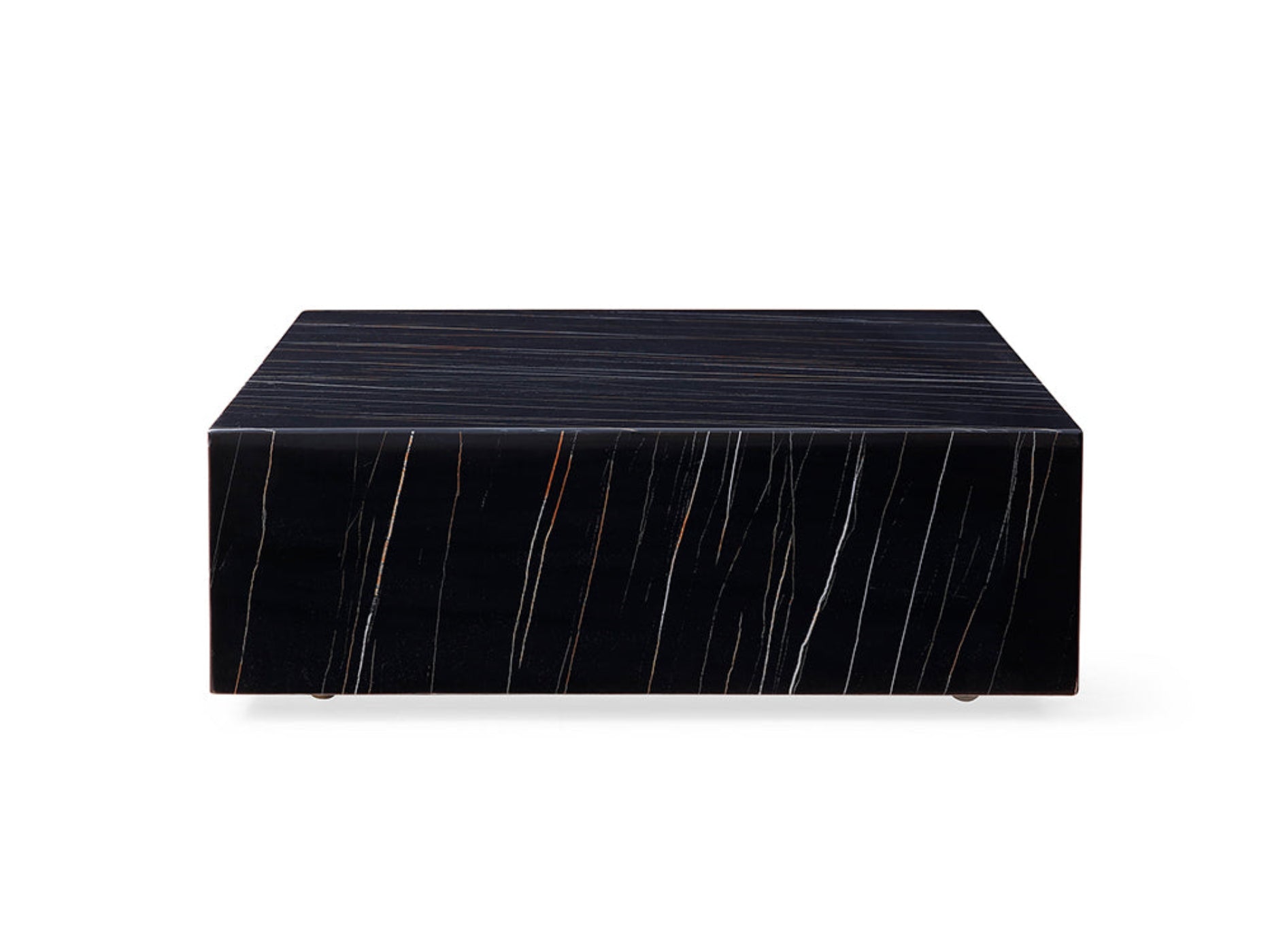 A: This coffee table features a minimalist black design, sturdy construction, and a unique cube shape, making it a striking centerpiece for modern interiors.