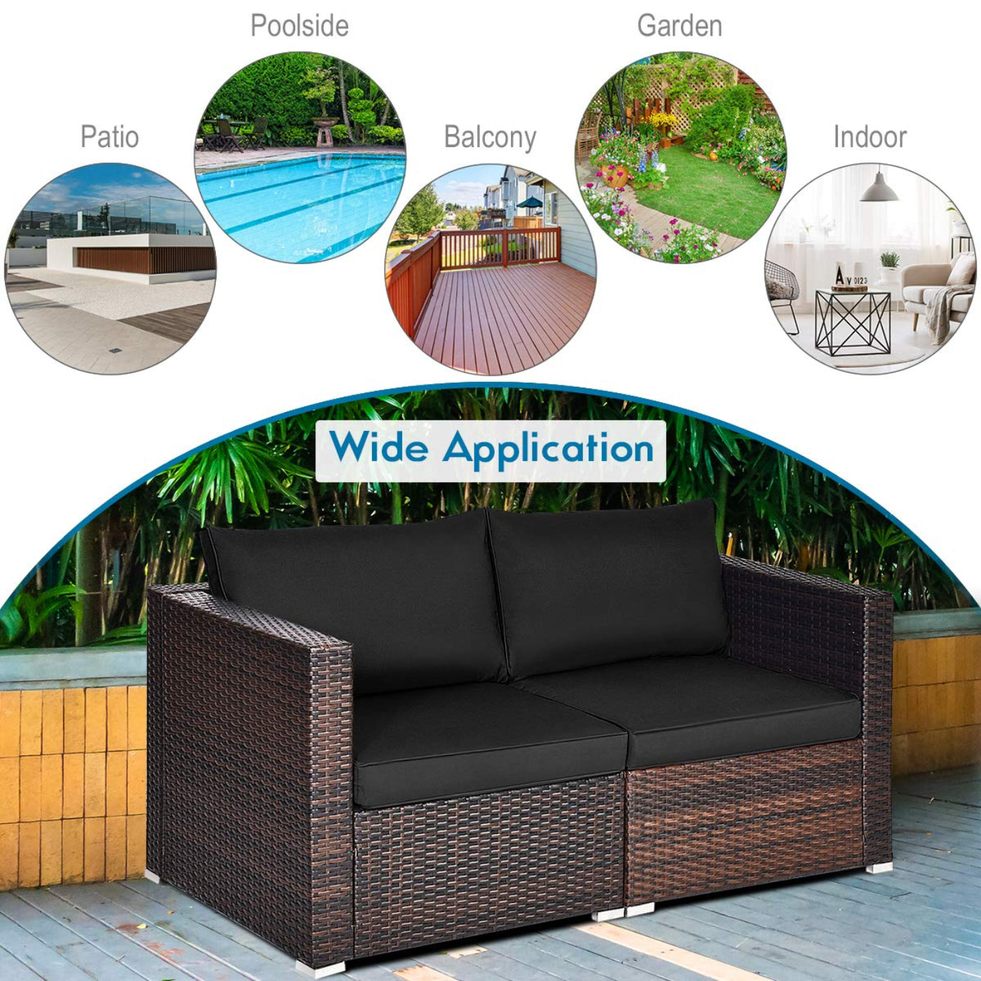 Tangkula Wicker Loveseat 2 Piece, Patio Furniture Couch with Removable Cushions - HW66869BK+