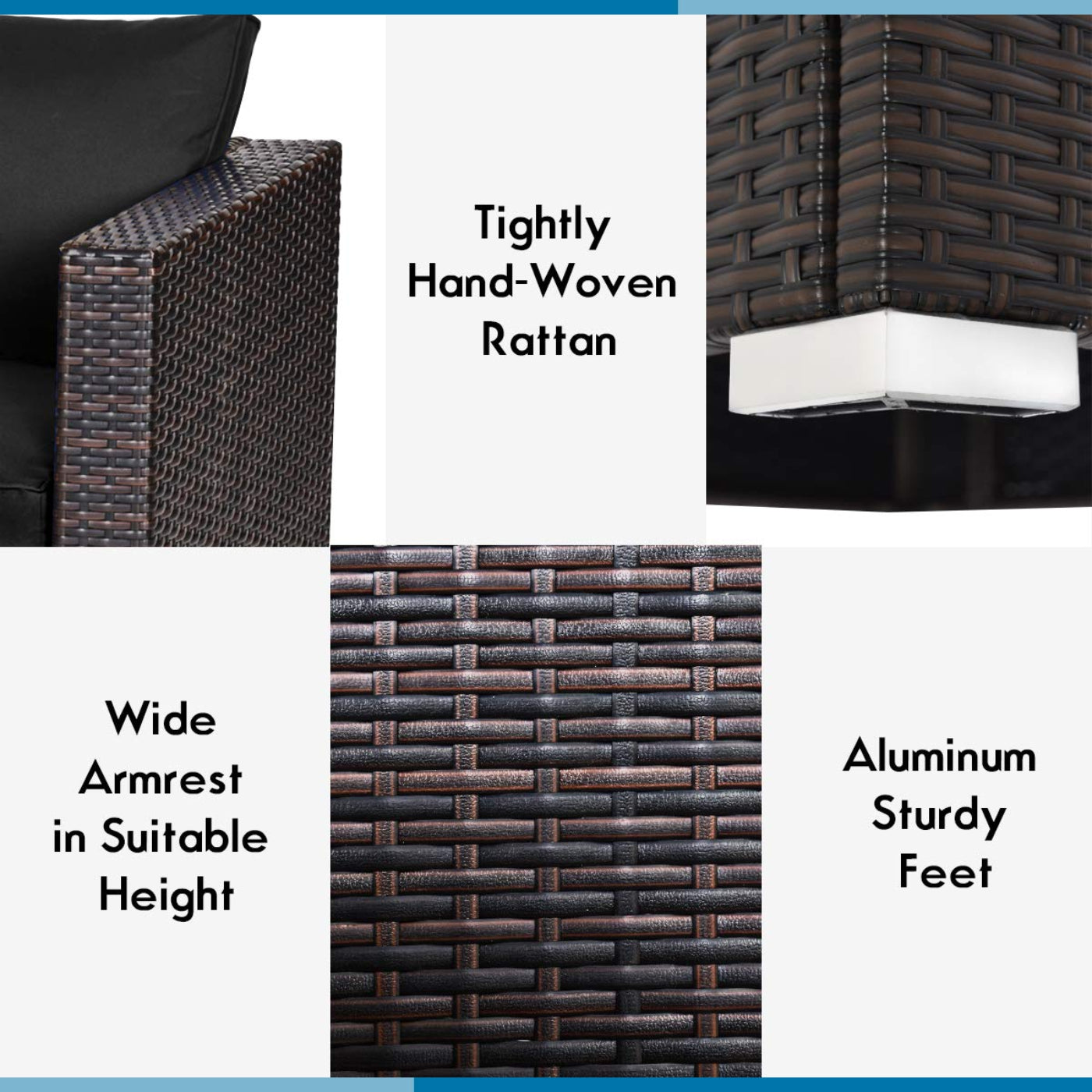 - Stable Frame & Hand-woven Rattan: Made of heavy-duty steel and weather-resistant PE rattan, the corner sofa has the advantages of high tensile strength, long service life, and so on. Plus, the load capacity of the sofa is also improved with a sturdy frame.