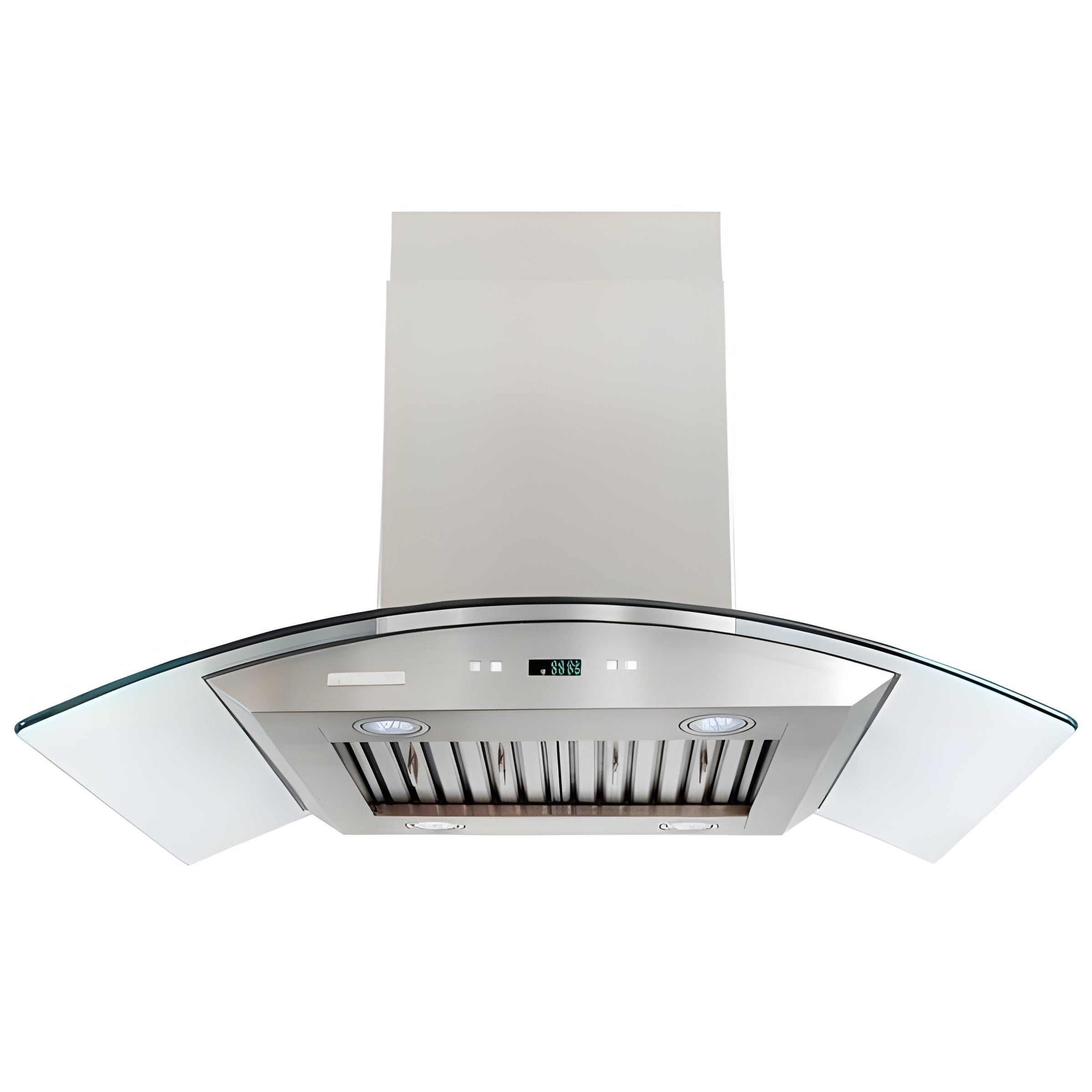 A: A 42-inch island mount range hood designed for powerful ventilation, efficiently removing smoke, grease, and odors from your kitchen.