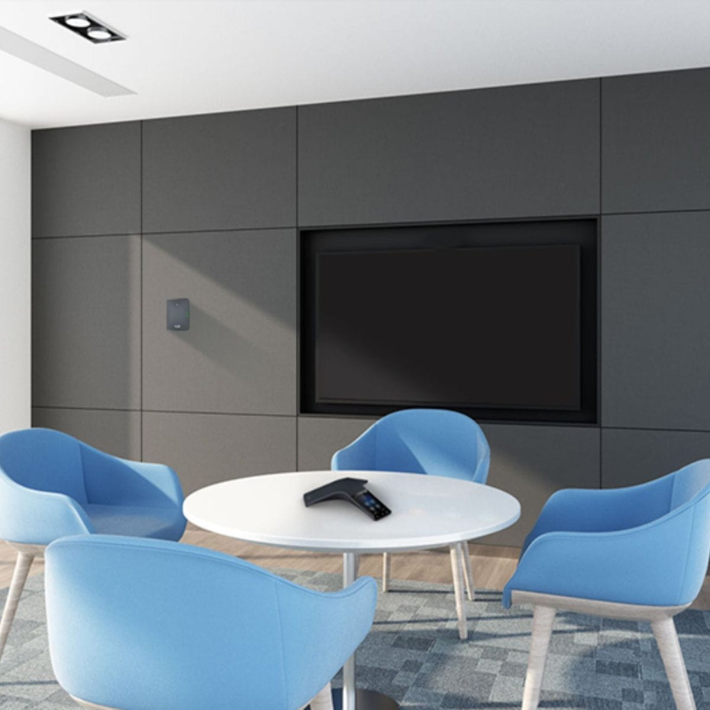 Yealink CP935W is a hermit in a conference room. Its black acoustics fabric can realize crystal-clear audio and is resistant to water, oil, and stain. Its ultra-thin body, appropriate desktop fit, and ingenious hidden wiring slot, perfectly fit for the simple business style in the conference rooms. Additionally, its built-in Linux system and easy-to-use UI interface, allow users to launch a meeting with one button and increase user adoption.
