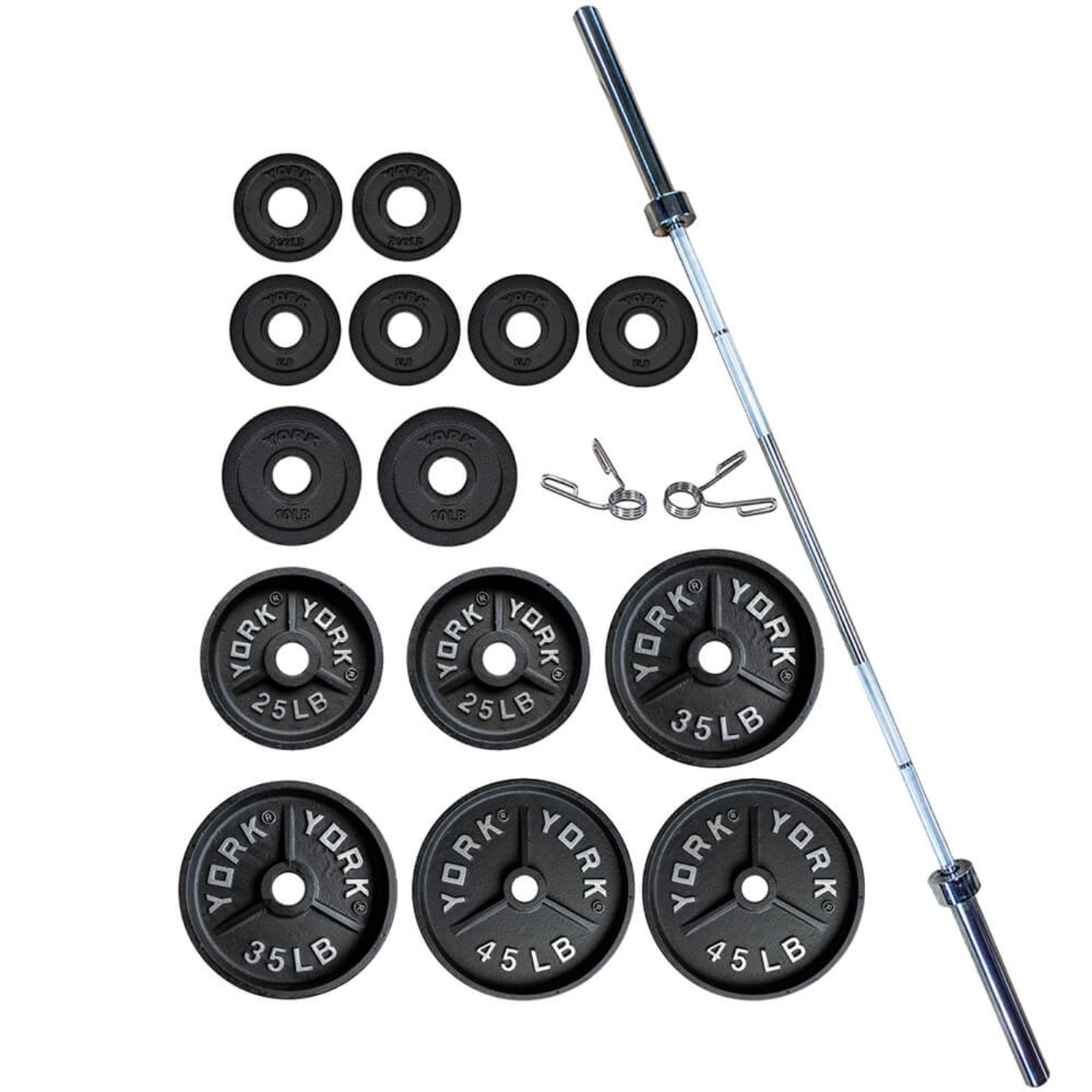 The 300lb Deep Dish Cast Iron Olympic Plate and Barbell Set by York Barbell