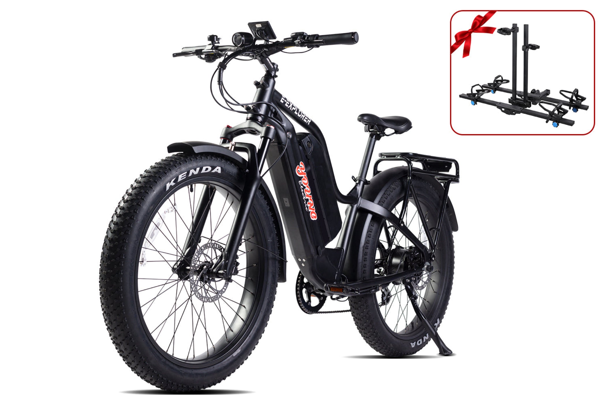 Speed & Terrain Capability: The E-Explorer can reach speeds up to 28 MPH, and its 26-inch fat tires provide excellent stability and traction on varied terrains, including dirt paths and hilly environments.